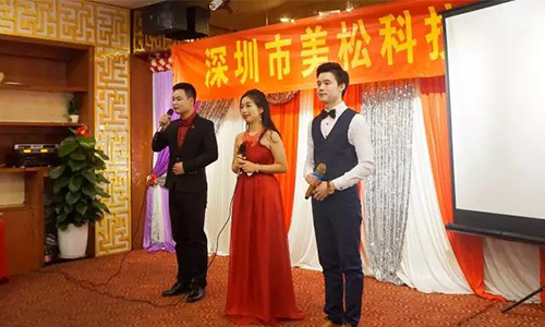 晚會節(jié)目精彩紛呈,高潮迭起,節(jié)目編排有張有弛,料點十足。在晚會節(jié)目進入尾聲時,2位來自俄羅斯的外國朋友—美松國外合作伙伴,也上臺給大家?guī)須g樂。他們用俄語為我們熱情高歌。俄語,雖然很多人聽不懂,但是我們美松人用打拍子的方式協(xié)同這位國外朋友獻(xiàn)出自己的熱情。最后用他們的表達(dá)方式祝愿美松走向更美好的未來,同時也期盼彼此之間有更多的合作。其實,合作是必然的,我們美松科技的產(chǎn)品早已售往全國,遠(yuǎn)銷海外,相信在未來的日子里也會走得更順暢,為更多的客戶獻(xiàn)上更優(yōu)質(zhì)的產(chǎn)品。