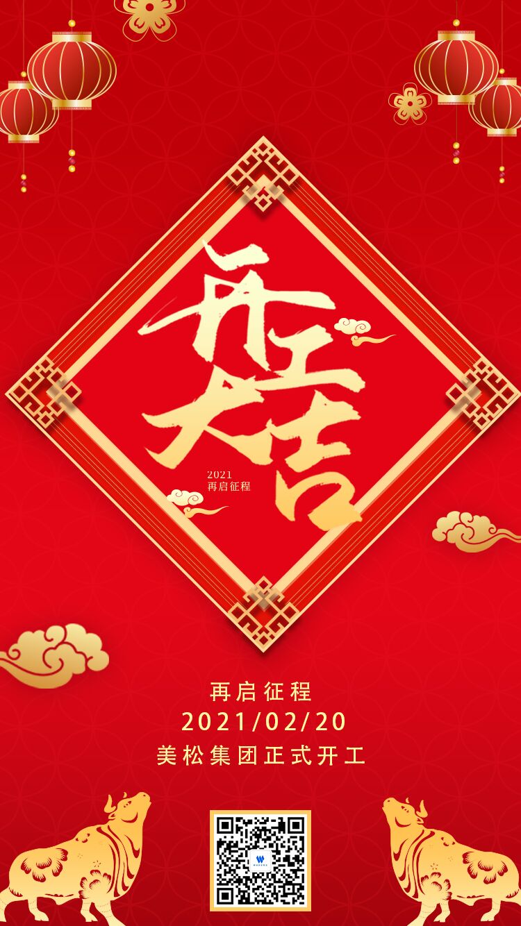 2021年2月20日,美松集團正式開工的日子,董事長陳斌先生攜全體員工祝福全國人民牛年:新春吉祥!牛運亨通!牛氣沖天!
