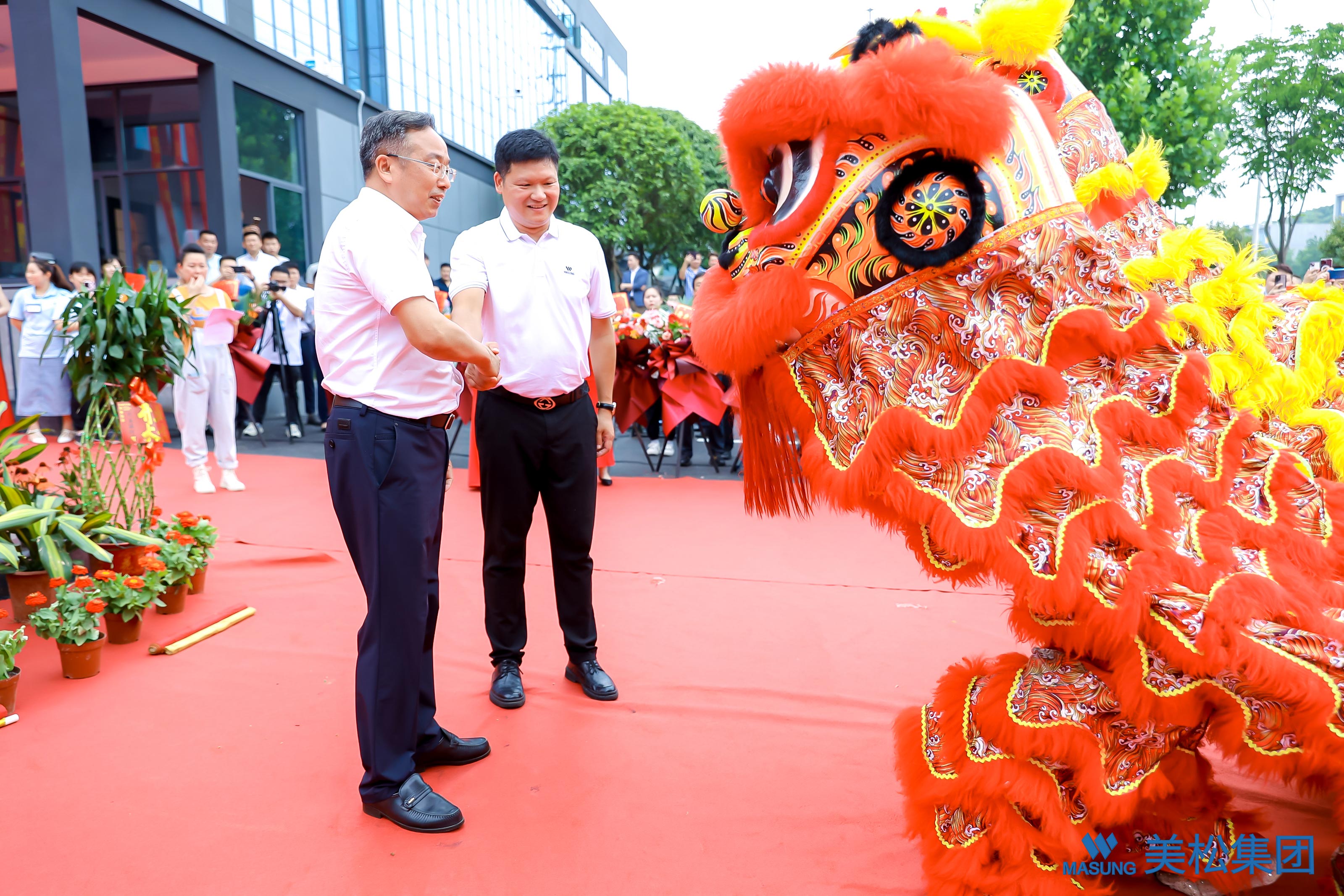 美松集團(tuán)董事長陳斌先生和望城經(jīng)開區(qū)黨工委姚羅光同志共同為美松集團(tuán)智能產(chǎn)業(yè)園園碑揭幕,同時(shí)也為沉睡的祥獅點(diǎn)上尊貴的一筆,把朱砂涂在獅的眼睛上,象征賜予生命,寓意虎虎生威,事業(yè)興盛,祥瑞如意,宏圖大展。一點(diǎn)左眼靈氣滿身,二點(diǎn)右眼志在乾坤,三點(diǎn)額頭旭日凌空,照亮生財(cái)之道,四點(diǎn)獅嘴招財(cái),納祥無限,財(cái)源滾滾自天來。
