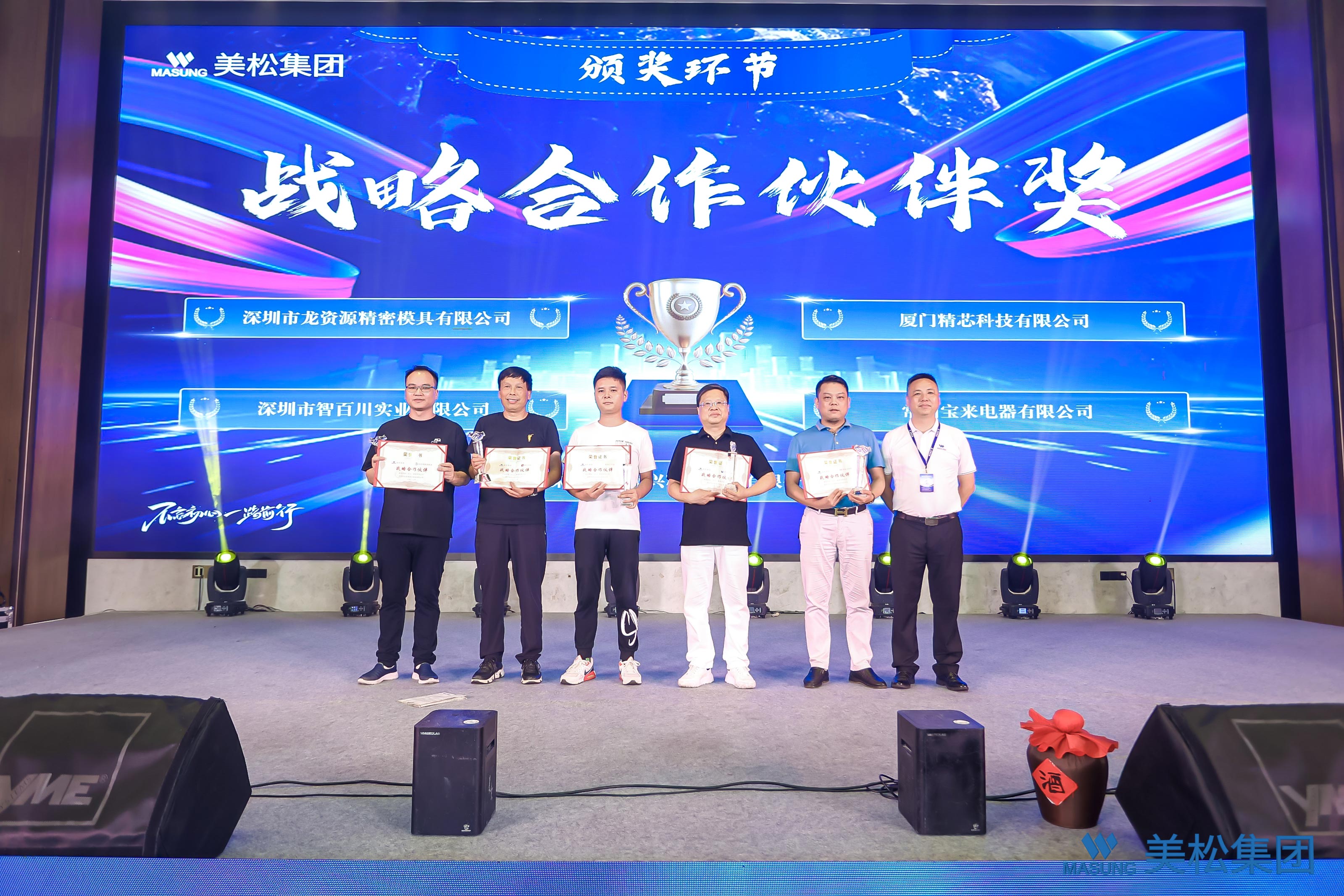美松人為感謝所有陪同美松風(fēng)雨兼程,一路前行的合作伙伴們?,F(xiàn)場為優(yōu)質(zhì)合作伙伴頒發(fā)了陪伴成長獎(jiǎng)、戰(zhàn)略合作伙伴獎(jiǎng)、優(yōu)秀供應(yīng)商獎(jiǎng)。思想創(chuàng)造價(jià)值,才智彰顯風(fēng)華,一直以來和美松優(yōu)勢互補(bǔ),共求發(fā)展。感謝他們用真誠贏得信任,用品質(zhì)換來永恒。嚴(yán)把質(zhì)量關(guān),為美松呈現(xiàn)高品質(zhì)的產(chǎn)品,為鞏固美松品牌形象創(chuàng)下驕人的成績;感謝他們對待美松始終堅(jiān)定的開啟“攜手并進(jìn)”的馬達(dá),積極配合、腳踏實(shí)地。