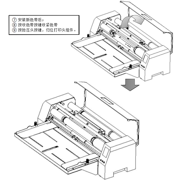 7.抬壓頭設(shè)計(jì),碳帶打印機(jī)換碳帶視頻。