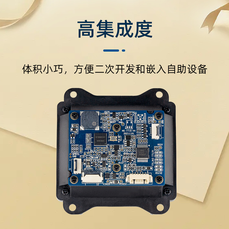 美松二維碼掃描模塊產(chǎn)品特性 1.快速識別紙質(zhì)和屏幕條碼,破損污損二維碼均能識讀 2.接口豐富,內(nèi)置RS232,USB,TTL5V,TTL3.3V 3.高集成度,21mm厚小機身,非常方便的用于高度集成應(yīng)用環(huán)境 4.綠色低功耗,產(chǎn)品使用壽命長;數(shù)據(jù)傳輸更加安全可靠 5.采用核心解碼技術(shù),可快速識讀各類紙質(zhì),塑料卡,屏幕條形碼,二維碼 6.圖像采集器與解碼板一體化 設(shè)計,體積小,重量輕,可適應(yīng)各種集成應(yīng)用