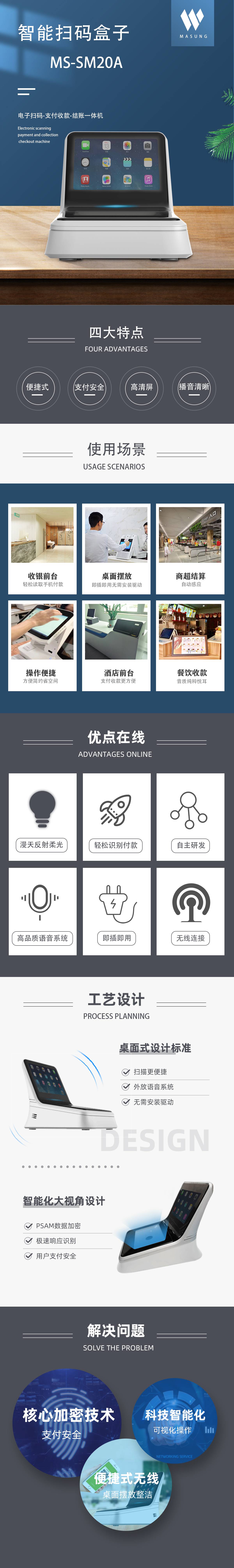 美松二維碼支付收款機(jī)MS-SM20A智能盒子采用掃一掃,二維碼,雙聲道立體音喇叭外放,商家只需用戶提供收款碼就可實(shí)現(xiàn)快速收款的收款機(jī),二維碼掃描,對(duì)商家收款帶來(lái)便利,對(duì)用戶二維碼支付提供安全,交易實(shí)現(xiàn)快速精準(zhǔn)安全模式.電子掃碼,支付收款,結(jié)賬一體的設(shè)備,支持微信,支付寶,公交碼支付,掃碼成功語(yǔ)音播報(bào) ,解放收銀員,更避免漏單,接口:網(wǎng)口,4G和USB,經(jīng)典外觀設(shè)計(jì)。