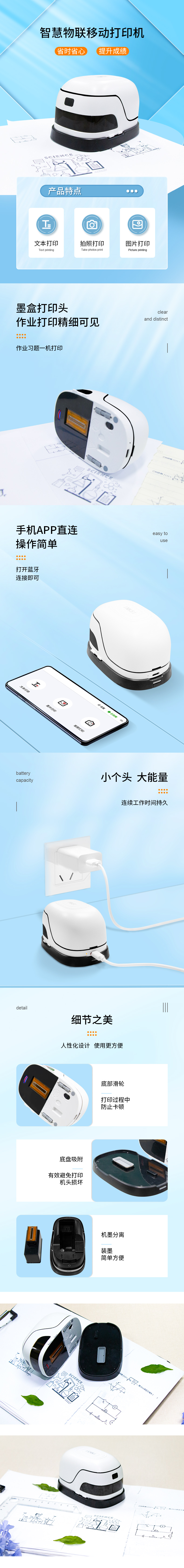 1.墨盒打印,清晰不褪色 2.支持圖片打印、文本打印和拍照打印,開拓思維 3.手機app藍牙連接,方便快捷 4.辦公、學習、生活、創(chuàng)意的好幫手