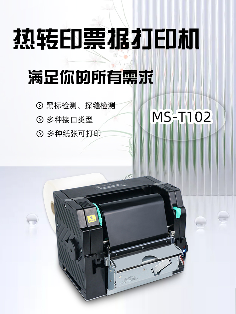 美松MASUNG自主研發(fā)4寸熱轉(zhuǎn)印標(biāo)簽打印機(jī) 1.打印清晰長久保存,定位精準(zhǔn)且易于維護(hù) 2.黑標(biāo)檢測傳感器,探縫檢測傳感器,碳帶將盡傳感器 3.打印速度快,噪音低,紙倉容量大,紙張限位可調(diào)的特點(diǎn) 4.可打印熱敏連續(xù)紙,銅版紙,吊牌,合成紙等標(biāo)簽紙 5.適用于服裝類,商場,金融,餐飲,醫(yī)院等行業(yè)