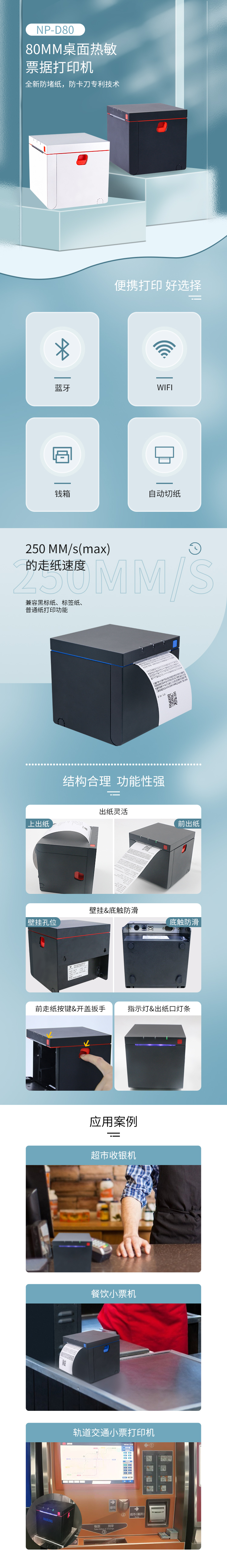 1.紙將盡可手動調(diào)節(jié)大小,精確到張數(shù) 2.防堵防拽紙專利技術(shù) 3.支持熱敏紙,黑標(biāo)紙,不干膠標(biāo)簽紙打印功能 4.出紙方向多樣,前出紙或者上出紙