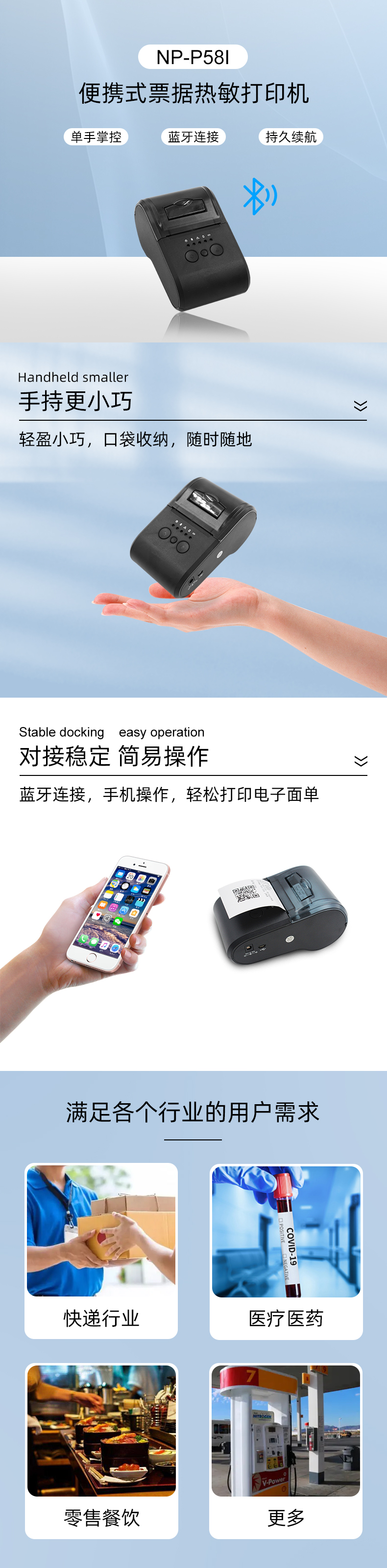 1.支持多種一維條形碼&二維碼功能的打印 2.支持GB18030漢字庫,可高速打印漢字 3.接口類型:藍牙,mircoUSB