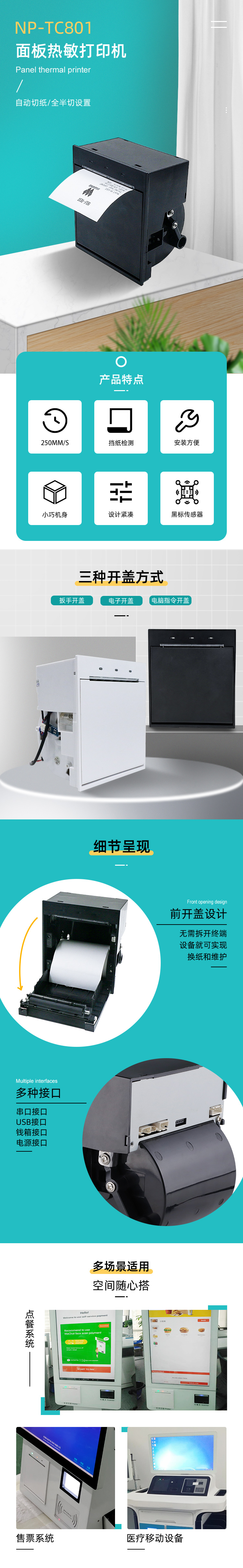 1.擁有易裝紙、滑動式自動切紙等功能;擁有多種安裝方式 2.紙將盡可手動調(diào)節(jié)大小,最精確的紙將盡檢測(可精確張數(shù)) 3.按開蓋扳手;通過開蓋按鍵 ;電腦發(fā)送開蓋指令 4.帶有堵紙器檢測狀態(tài);多樣傳感器協(xié)助控制 5.無人值守內(nèi)嵌式熱敏打印機 6.醫(yī)療、政務(wù)、零售、餐飲、加油站等行業(yè)的自助終端打印設(shè)備