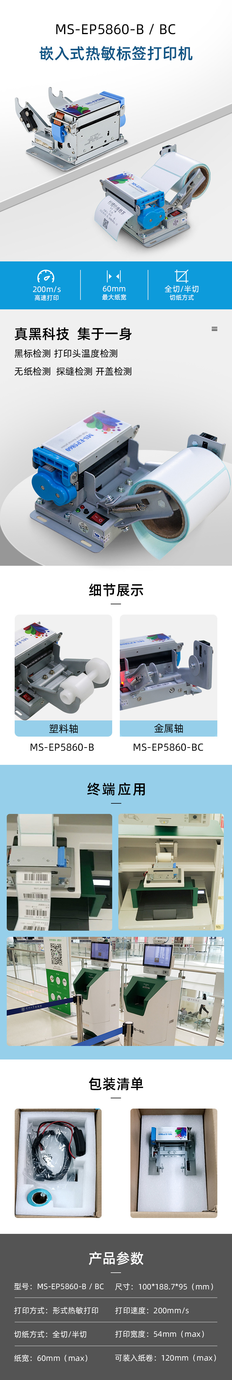 美松MASUNG自主研發(fā)嵌入式熱敏不干膠打印機 1.采用側(cè)翻蓋設(shè)計,打印質(zhì)量可靠 2.集成度高,可定制不同的支架結(jié)構(gòu),便于嵌入多種終端設(shè)備 3.支持不干膠/黑標紙/熱敏紙打印 4.防堵防拽專利技術(shù) 5.采用大齒輪嵌入,打印走紙力度大,速度快
