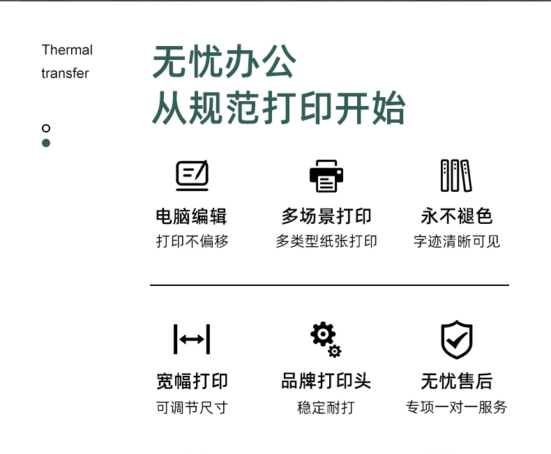 熱轉(zhuǎn)印打印機(jī)適用范圍:適用于公檢法,檔案局,審批局,醫(yī)療診所,教育機(jī)構(gòu),煙草,房產(chǎn)管理,電力,鐵路等行業(yè).