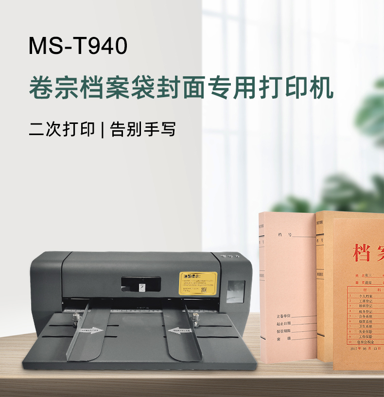 美松MS-T940熱轉(zhuǎn)印檔案袋封面打印機(jī),為牛皮紙,不動(dòng)產(chǎn)等證件內(nèi)頁(yè),無(wú)酸紙檔案盒、檔案袋特種行業(yè)提供智能打印方案,且永久保存,適用于檔案館、公檢法司部門(mén)、教育事業(yè)單位、工商稅務(wù)局、金融機(jī)構(gòu)等行業(yè)的檔案管理的工作,實(shí)現(xiàn)高效規(guī)范的科學(xué)檔案管理。