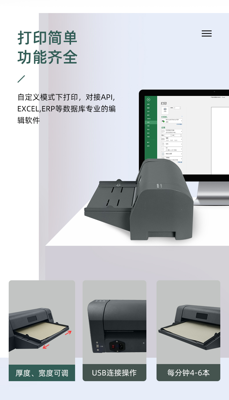 美松MASUNG自主研發(fā)熱轉(zhuǎn)印封面打印機(jī) 1.專業(yè)打印牛皮紙,不動(dòng)產(chǎn)等證件內(nèi)頁(yè),無(wú)酸紙檔案盒 2.對(duì)接API,EXCEL,ERP等數(shù)據(jù)庫(kù)專業(yè)的編輯軟件,自定義打印 3.USB連接操作簡(jiǎn)單,耗材成本低,長(zhǎng)久保存 4.快速打印,每分鐘4-6本,整齊規(guī)范化 5.進(jìn)紙厚度可調(diào),適合不同封面打印