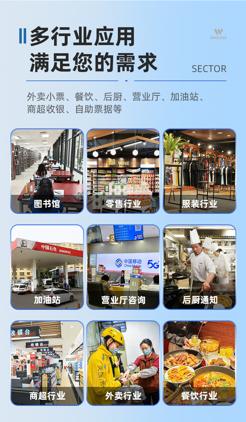 MD80I是一款高顏值的可桌面也可壁掛的票據(jù)打印機(jī)。MD80I外形四四方方的,圓潤一體設(shè)計(jì)、簡于外,精于內(nèi)。流線造型,外觀簡潔大方。顏色搭配顯得更加干凈整潔,可內(nèi)嵌于一些自助ai設(shè)備上,也可直接進(jìn)行使用。MS-MD80I是一款全能的桌面式壁掛式票據(jù)打印機(jī),適用于零售商超、中小電商、倉儲物管、影院娛樂等行業(yè)領(lǐng)域,支持簡體/繁體、英/日/韓文多種國際語言,新零售、跨境電商、影院更適合。MS-MD80I擁有超高速打印速度,采用高級強(qiáng)勁機(jī)芯,打印速度可高達(dá)250MM/S成為市面上同類產(chǎn)品中快速打印的佼佼者,清晰穩(wěn)定與高速皆可兼得帶來顧客滿分體驗(yàn)。MS-MD80I擁有豐富的可選接口,支持RS232串口、USB、網(wǎng)口,可選配藍(lán)牙、WiFi等接口、同時(shí)支持24V錢箱接入、滿足不同的連接需求。專業(yè)黑標(biāo)定位功能,前出紙打印,無線連接,藍(lán)牙接口連接,WiFi接口連接,USB連接,打印機(jī)外殼材質(zhì)高端,內(nèi)置機(jī)芯打印速度快。