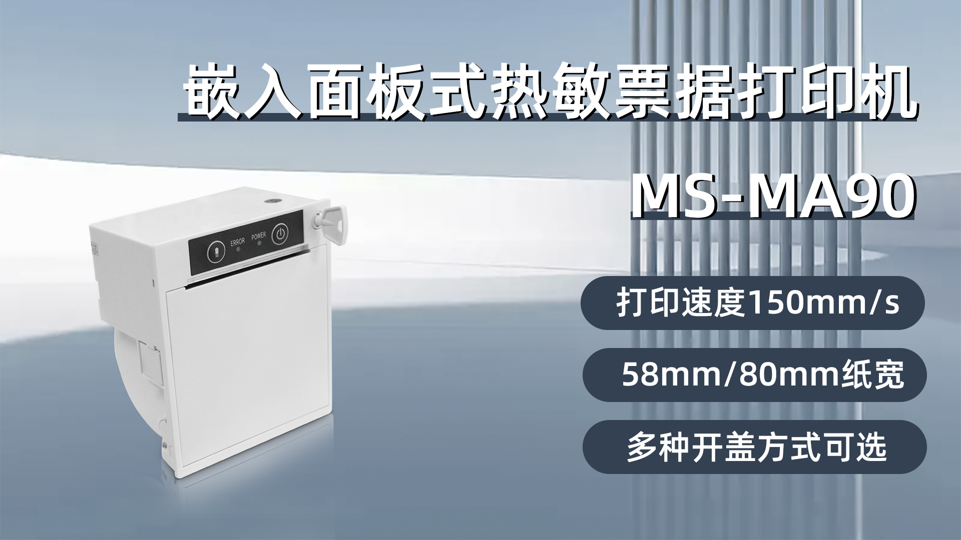 美松 MS-MA90熱敏高速內(nèi)嵌式打印機(jī)具有黑、白可選的外觀顏色,可以根據(jù)終端設(shè)備的整體風(fēng)格進(jìn)行選擇,使得終端設(shè)備更加美觀大方。此外,該打印機(jī)還提供三種開蓋方式可選,分別是手動扳手開蓋、鑰匙開蓋、電子鎖開蓋,用戶可以根據(jù)實際需求選擇最適合的開蓋方式,方便快捷。